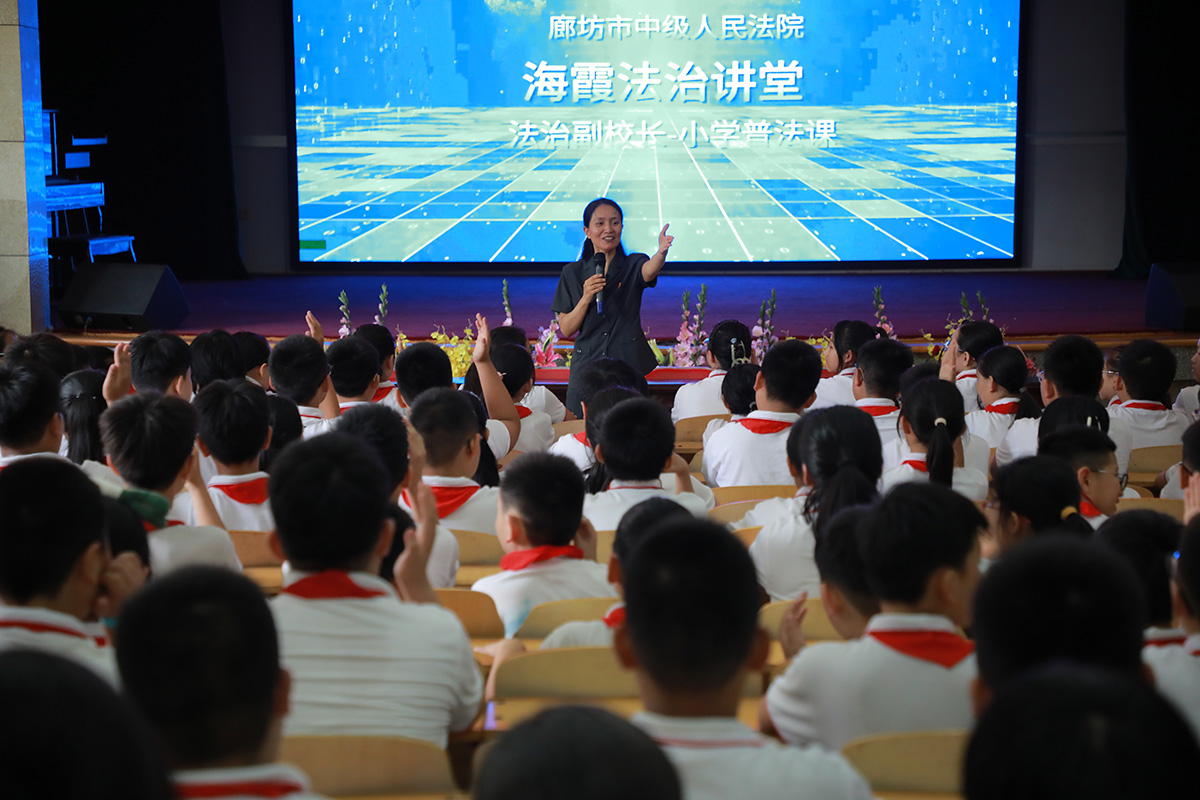 9月6日,河北省廊坊市中級人民法院法治副校長“開學(xué)第一課”走進(jìn)廊坊市第一實驗小學(xué)。該院未成年人案件綜合審判庭庭長、廊坊市第一實驗小學(xué)法治副校長張海霞攜《海霞法治講堂》系列普法視頻,以預(yù)防校園欺凌為題進(jìn)行授課。據(jù)了解,《海霞法治講堂》以法官張海霞為原型,運(yùn)用數(shù)字虛擬技術(shù),合成河北省首個AI法官向未成年人講授法治課程。
