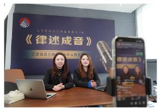 (圖為“八姑娘”公益律師聯(lián)盟成員做客鎮(zhèn)江市婦聯(lián)直播間。嚴海霞 攝)
