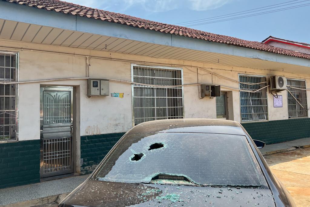 一輛停在現(xiàn)場附近的車輛因爆炸受損。新華社記者陳振海 攝