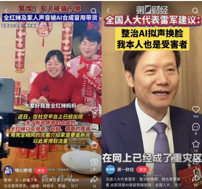 比如,新京報(bào)曾報(bào)道僅需幾元可隨意模仿明星聲音,商家用AI克隆劉曉慶的聲音悄悄帶貨。南方日?qǐng)?bào)報(bào)道過(guò)全紅嬋及家人的聲音被AI合成冒充帶貨,等等。