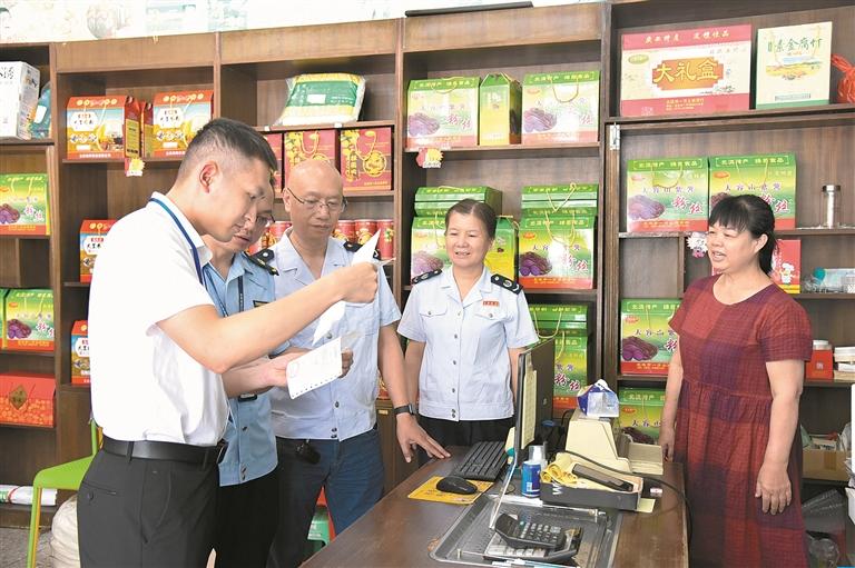 廣西壯族自治區(qū)北流市紀委監(jiān)委聚焦隱形變異“四風”問題,聯(lián)合稅務、市場監(jiān)督管理等部門組建監(jiān)督檢查組,深挖細查違規(guī)收送節(jié)禮等違反中央八項規(guī)定精神問題。圖為近日,該市監(jiān)督檢查組到轄區(qū)內(nèi)的土特產(chǎn)店了解有關情況。李桂泉 攝