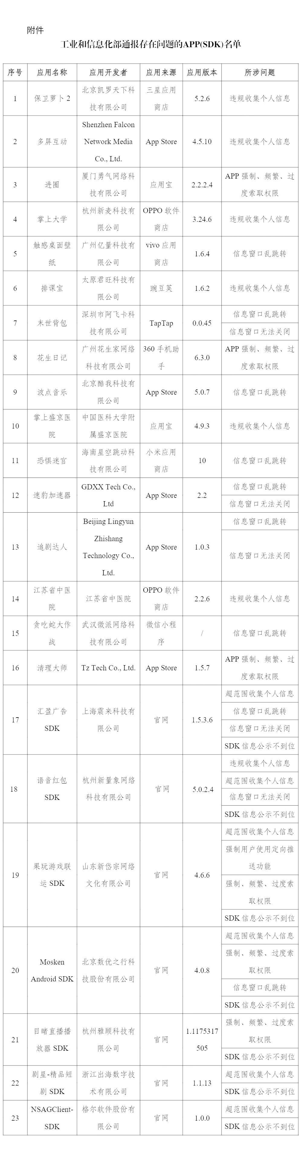 據(jù)悉,上述APP及SDK應(yīng)按有關(guān)規(guī)定進行整改,整改落實不到位的,工業(yè)和信息化部將依法依規(guī)組織開展相關(guān)處置工作。