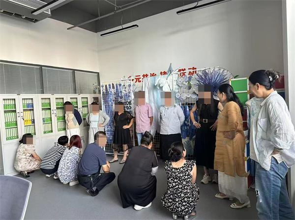 7月18日,在山東省臨沂市蘭山區(qū)人民法院“青橙計(jì)劃”開設(shè)的家庭教育指導(dǎo)課上,家長(zhǎng)們被要求扮演蹲在地上的“接受者”,換位思考。受訪者供圖