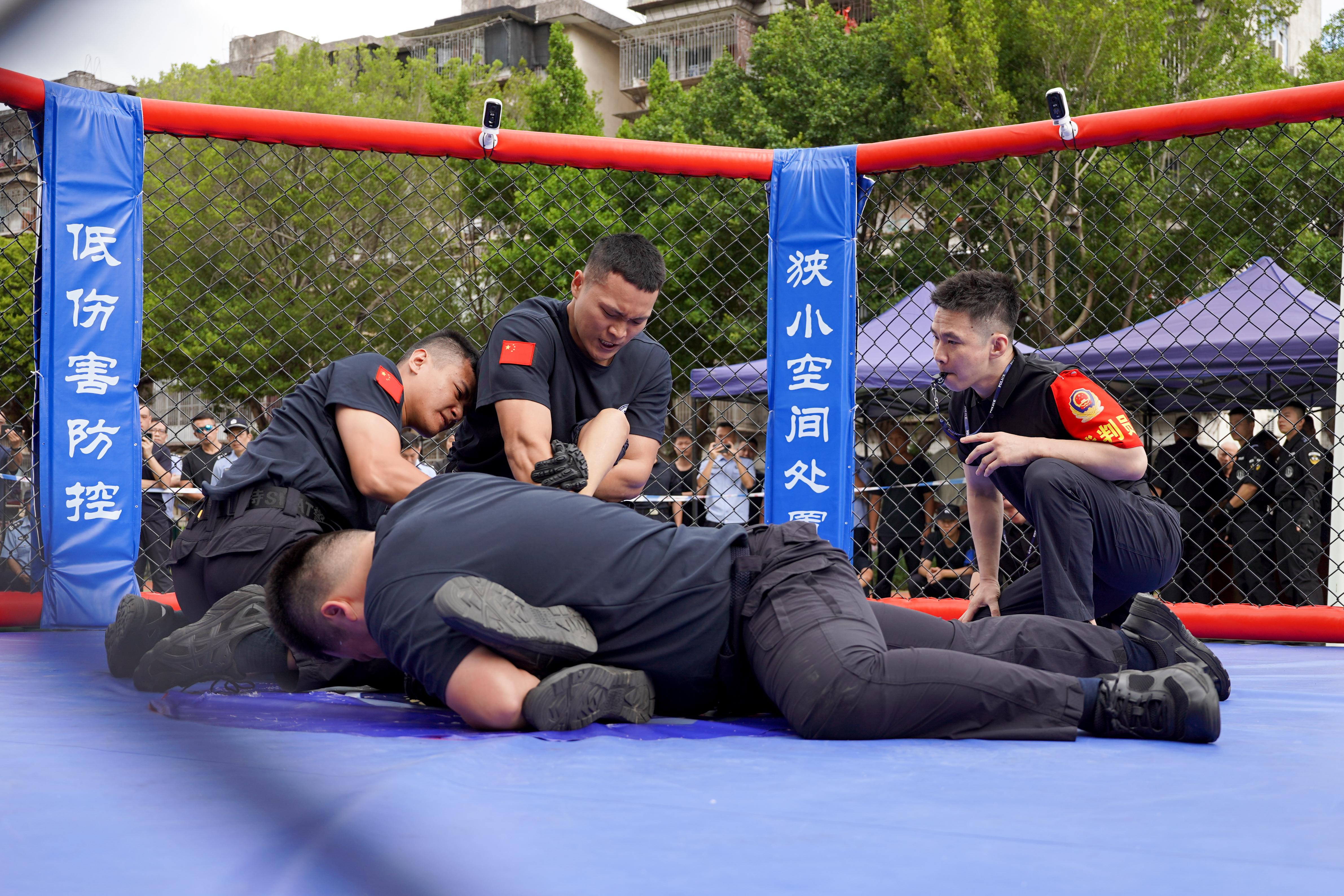 而徒手防衛(wèi)與控制、警械技能及協(xié)同處置兩項,福建監(jiān)獄系統(tǒng)警務技能大比武的“獨門絕技”,是整場比武中對抗性最強的項目,完全貼合監(jiān)獄工作可能面臨的現(xiàn)實危險場景設置。在徒手防衛(wèi)與控制環(huán)節(jié),民警需在無器械輔助的情況下,精準運用格擋、摔擒、控制等技巧,既要有效壓制“模擬暴徒”的反抗,又要確保自身與他人安全,每一個動作的力度把控、時機判斷都關乎處置成效,充分考驗民警的反應速度與近身對抗能力;警械技能及協(xié)同處置項目更注重團隊配合與專業(yè)工具運用,民警需熟練操作警棍、盾牌等警械,面對“暴力反抗”等模擬突發(fā)情況,快速形成戰(zhàn)術配合,從警械展開、陣型布防到協(xié)同控制、帶離處置,每一個環(huán)節(jié)都需緊密銜接、高效聯(lián)動,全方位還原監(jiān)獄應急處突的緊張態(tài)勢,是對民警實戰(zhàn)處置能力與團隊協(xié)作水平的終極檢驗。
