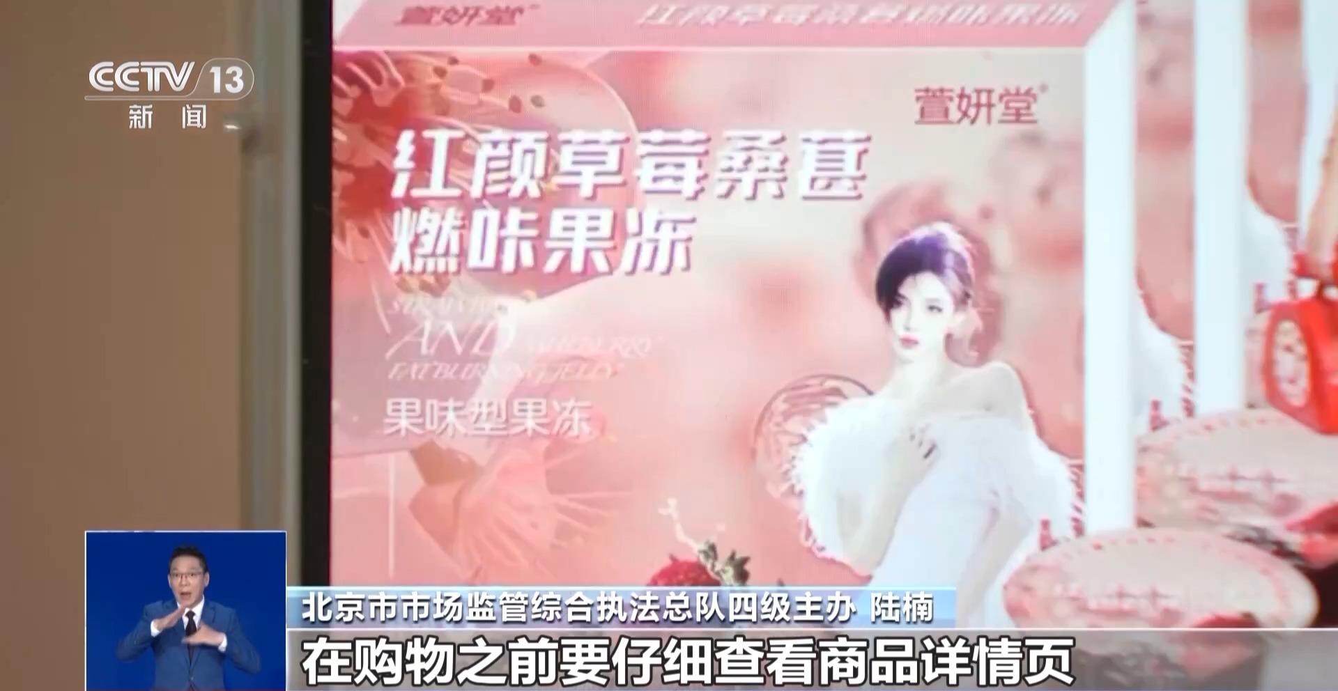北京市市場(chǎng)監(jiān)管綜合執(zhí)法總隊(duì)三級(jí)主辦 王鑫:我們可以看到這款產(chǎn)品的名稱叫作紅顏草莓桑葚燃咔果凍,它有食品生產(chǎn)許可證的編號(hào),沒有保健食品的藍(lán)帽子標(biāo)志,也沒有藥品的生產(chǎn)許可證,它只是一款普通的食品。