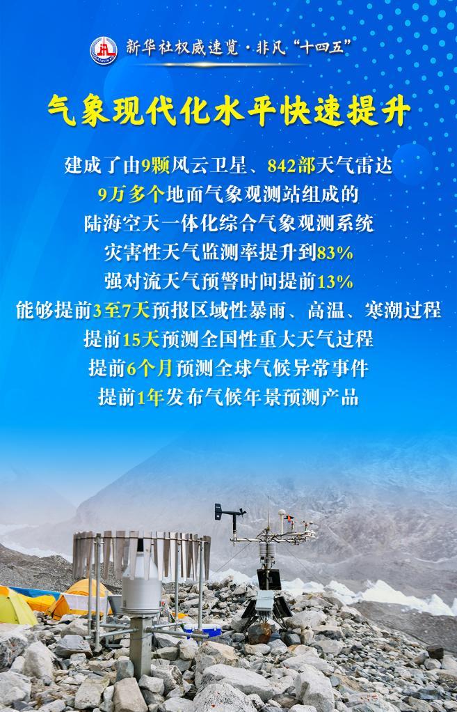 氣象事業(yè)是科技型、基礎(chǔ)性、先導(dǎo)性社會公益事業(yè)。10月11日,中國氣象局局長陳振林在國新辦舉行的“高質(zhì)量完成‘十四五’規(guī)劃”發(fā)布會上說,氣象部門加快推進氣象科技能力現(xiàn)代化和社會服務(wù)現(xiàn)代化,努力構(gòu)建科技領(lǐng)先、監(jiān)測精密、預(yù)報精準、服務(wù)精細、人民滿意的現(xiàn)代氣象體系。跟隨海報,一起了解。
