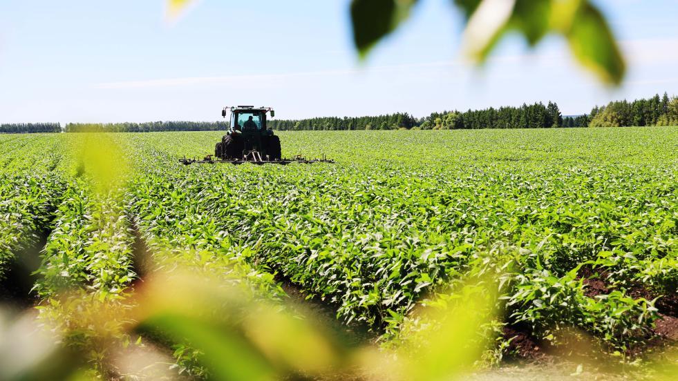 在北大荒集團(tuán)黑龍江紅星農(nóng)場(chǎng)第一管理區(qū)有機(jī)大豆田里,搭載北斗導(dǎo)航系統(tǒng)的大馬力機(jī)車開展有機(jī)大豆二次中耕作業(yè)(2025年7月7日攝)。新華社發(fā)(侯越攝)