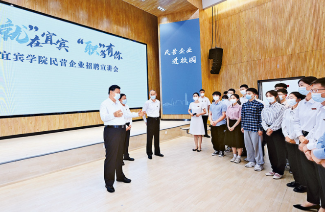 2022年6月8日,中共中央總書記、國家主席、中央軍委主席習(xí)近平在四川考察。這是8日下午,習(xí)近平在宜賓學(xué)院考察時,向正在參加企業(yè)招聘宣講會的教師、學(xué)生、企業(yè)負責(zé)人了解企業(yè)招工需求和畢業(yè)生簽約率等情況。 新華社記者 李學(xué)仁/攝