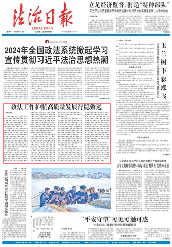 2024年1月,習(xí)近平總書記對政法工作作出重要指示強調(diào),堅持黨的絕對領(lǐng)導(dǎo),忠誠履職、擔(dān)當(dāng)作為,以政法工作現(xiàn)代化支撐和服務(wù)中國式現(xiàn)代化,為全面推進強國建設(shè)、民族復(fù)興偉業(yè)提供堅強安全保障。一年來,各級政法機關(guān)堅持以習(xí)近平新時代中國特色社會主義思想為指導(dǎo),深入貫徹落實習(xí)近平法治思想和總體國家安全觀,把習(xí)近平總書記的重要指示精神轉(zhuǎn)化為建設(shè)更高水平平安中國、法治中國的實際行動,護航高質(zhì)量發(fā)展行穩(wěn)致遠。
