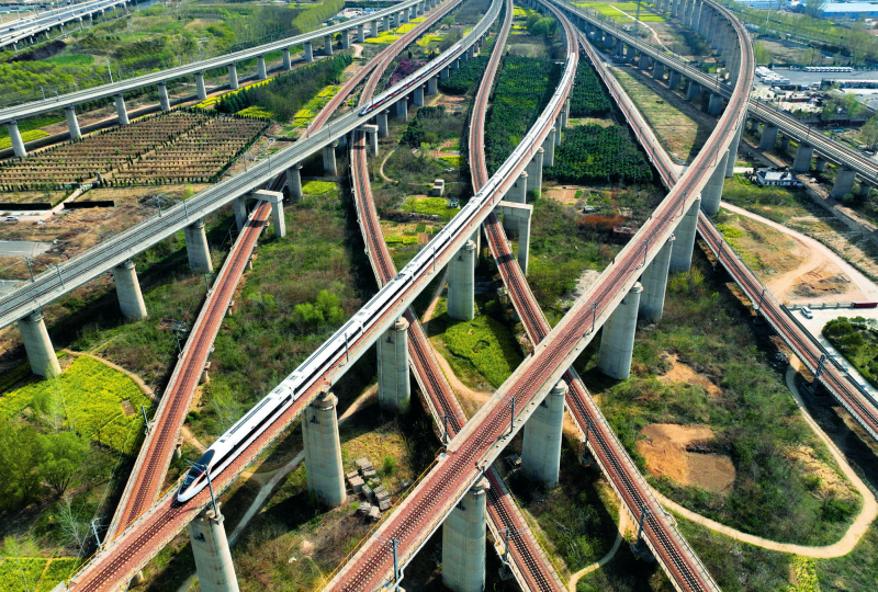 在河南省鄭州市拍攝的縱橫交錯的高鐵線路(2025年3月31日攝)李嘉南攝/本刊