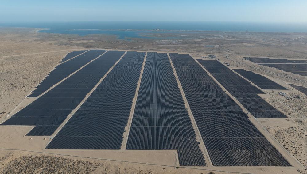 這是2025年4月2日在墨西哥佩尼亞斯科港附近拍攝的中國能源建設(shè)集團承建的佩尼亞斯科港光伏項目二期工程(無人機照片)。新華社記者 李夢馨 攝