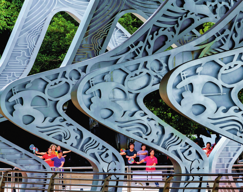 晨練者在廈門(mén)市演武大橋觀景平臺(tái)附近鍛煉健身(2024年9月4日攝)。魏培全攝/本刊