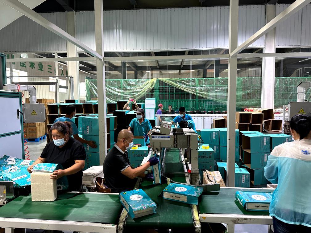 內(nèi)蒙古扎賚特旗的村民在稻米專業(yè)合作社加工包裝新米。(趙艷紅攝)