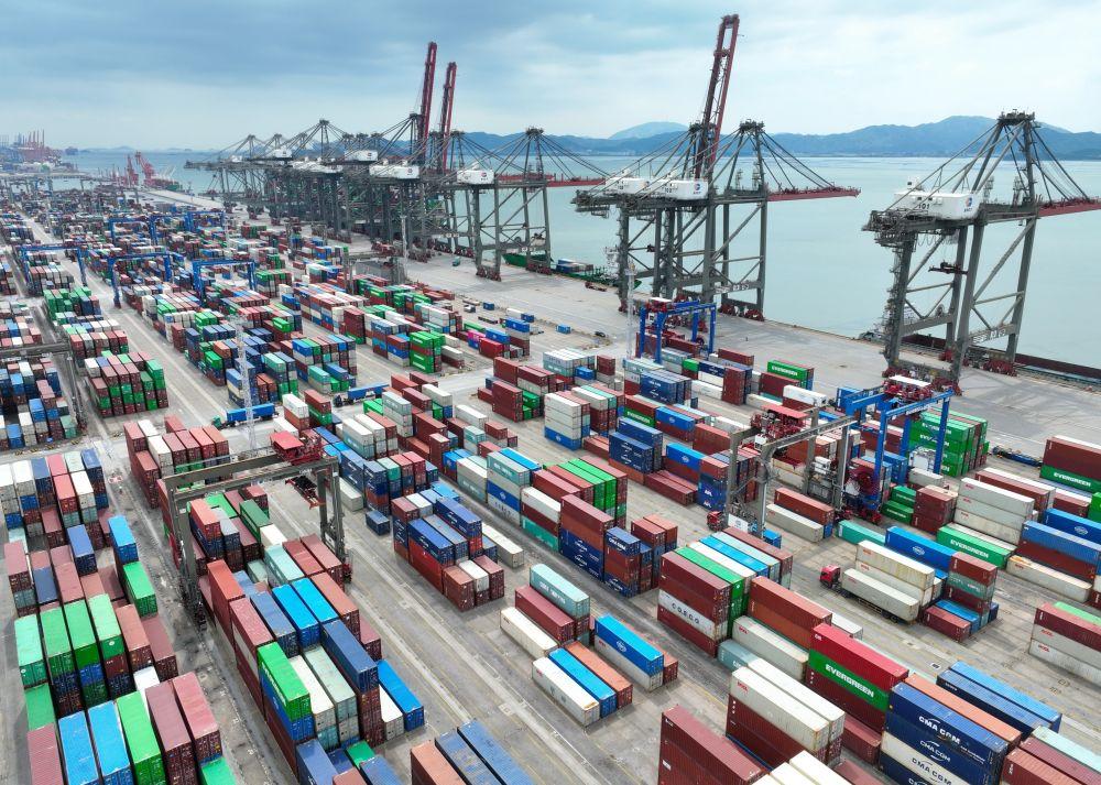 這是2024年10月15日拍攝的中國(guó)(福建)自由貿(mào)易試驗(yàn)區(qū)廈門(mén)片區(qū)集裝箱碼頭(無(wú)人機(jī)照片)。新華社記者 姜克紅 攝