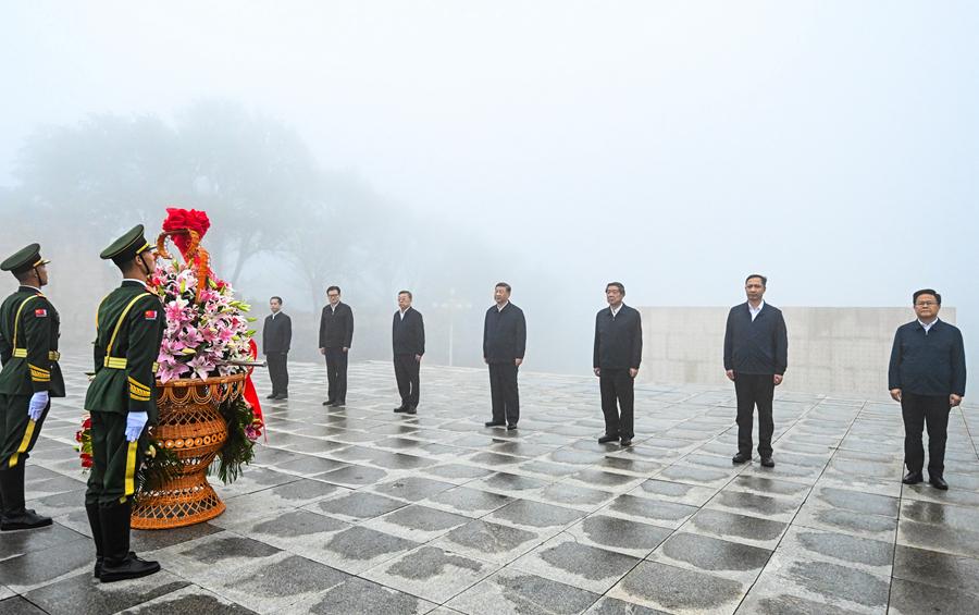 ??7月7日至8日,中共中央總書記、國(guó)家主席、中央軍委主席習(xí)近平在山西考察。這是7日下午,習(xí)近平在位于陽(yáng)泉市獅腦山的百團(tuán)大戰(zhàn)紀(jì)念碑廣場(chǎng),向八路軍烈士敬獻(xiàn)花籃。新華社記者 謝環(huán)馳 攝