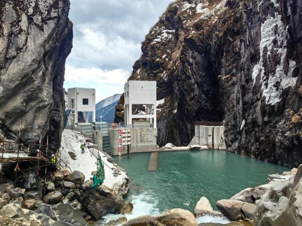 這是2025年3月17日在尼泊爾中北部拉蘇瓦縣拍攝的三金考拉水電站大壩。新華社發(fā)(中國(guó)港灣工程有限責(zé)任公司供圖)