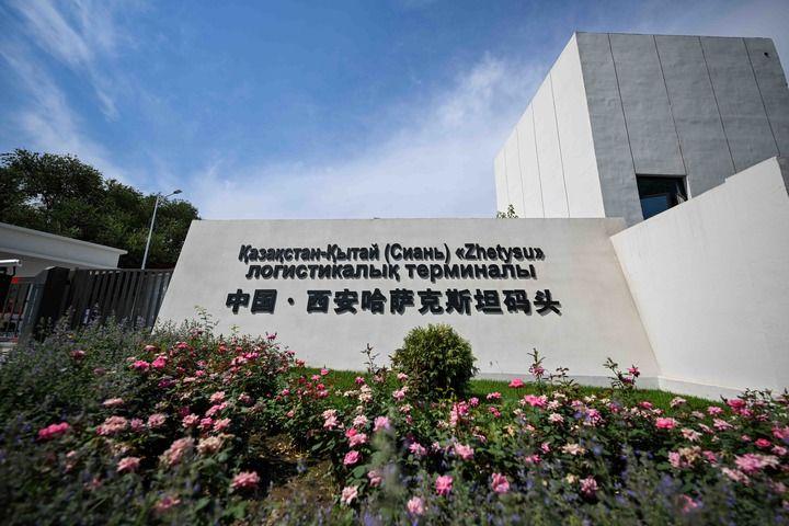 這是2025年8月1日在哈薩克斯坦阿拉木圖拍攝的中國·西安哈薩克斯坦碼頭標(biāo)識。新華社記者 李任滋 攝