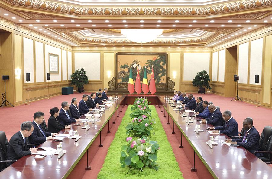 9月4日中午,國家主席習近平在北京人民大會堂會見來華出席紀念中國人民抗日戰(zhàn)爭暨世界反法西斯戰(zhàn)爭勝利80周年活動的剛果(布)總統(tǒng)薩蘇。