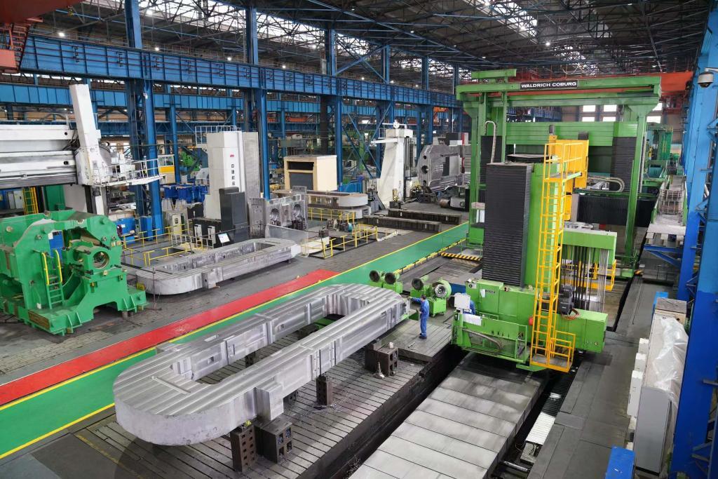 2021年7月,中國一重集團有限公司重型裝備制造廠生產車間,工人在進行生產作業(yè)。新華社記者 王建威 攝