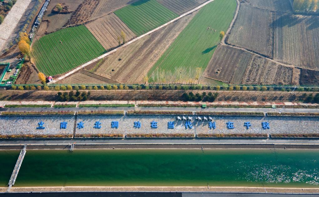 位于京冀交界處的南水北調(diào)中線工程總干渠(2024年11月14日攝,無(wú)人機(jī)照片)。 新華社記者 陳鐘昊 攝