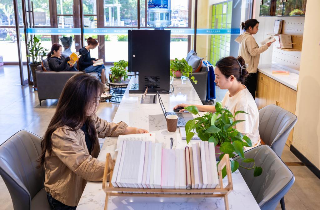 2024年5月20日,年輕人在呼和浩特市玉泉區(qū)人才公寓公共休閑區(qū)閱讀、學(xué)習(xí)。(丁根厚 攝)