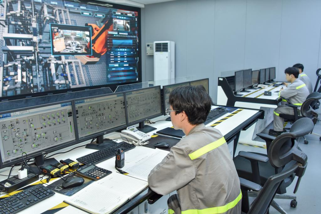 8月14日,銅陵有色金冠銅業(yè)分公司奧爐電解車間內(nèi),工作人員正在查看技術(shù)參數(shù)。(儲著傳 攝)