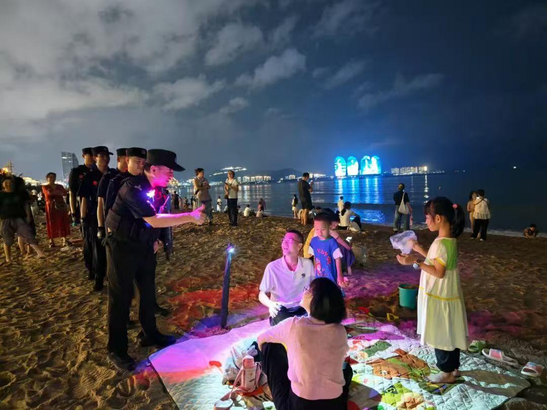 “立正、向右看齊、向前看,稍息,講一下,我們今天的任務(wù)是做好中秋安保工作……”10月6日晚,海南省三亞市公安局特警支隊(duì)四級(jí)高級(jí)警長(zhǎng)劉長(zhǎng)華正帶隊(duì)在三亞灣海月廣場(chǎng)執(zhí)勤。
