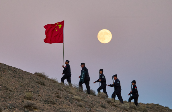 10月6日是中秋佳節(jié),堅守在中哈邊境一線的新疆出入境邊防檢查總站博州邊境管理支隊阿拉山口邊境警務(wù)站的移民管理警察依舊堅守邊境一線。入夜,擔任夜間巡邊任務(wù)的隊員們舉起五星紅旗,在一輪明亮的月光照耀下踏上巡邊路,月光照耀著手中的國旗分外鮮紅。雖然自己不能與遠方的親人團聚,移民管理警察們卻無悔地選擇堅守崗位,用實際行動守護著千家萬戶的平安與團圓。