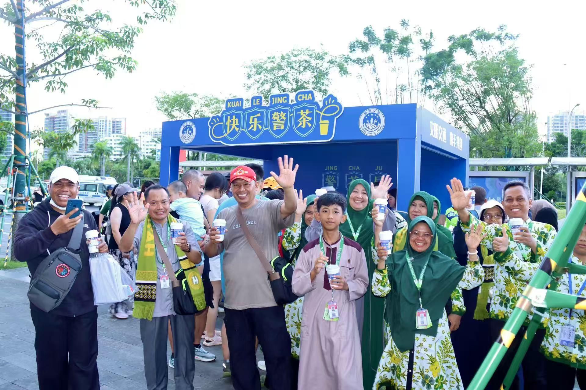 “警茶局”的魅力,還吸引了八方來客。10月2日下午,來自印度尼西亞的馬克在導(dǎo)游的幫助下,成功答對(duì)了所有題目。他興奮地舉起手中的“警茶”,為這個(gè)創(chuàng)意活動(dòng)點(diǎn)贊。