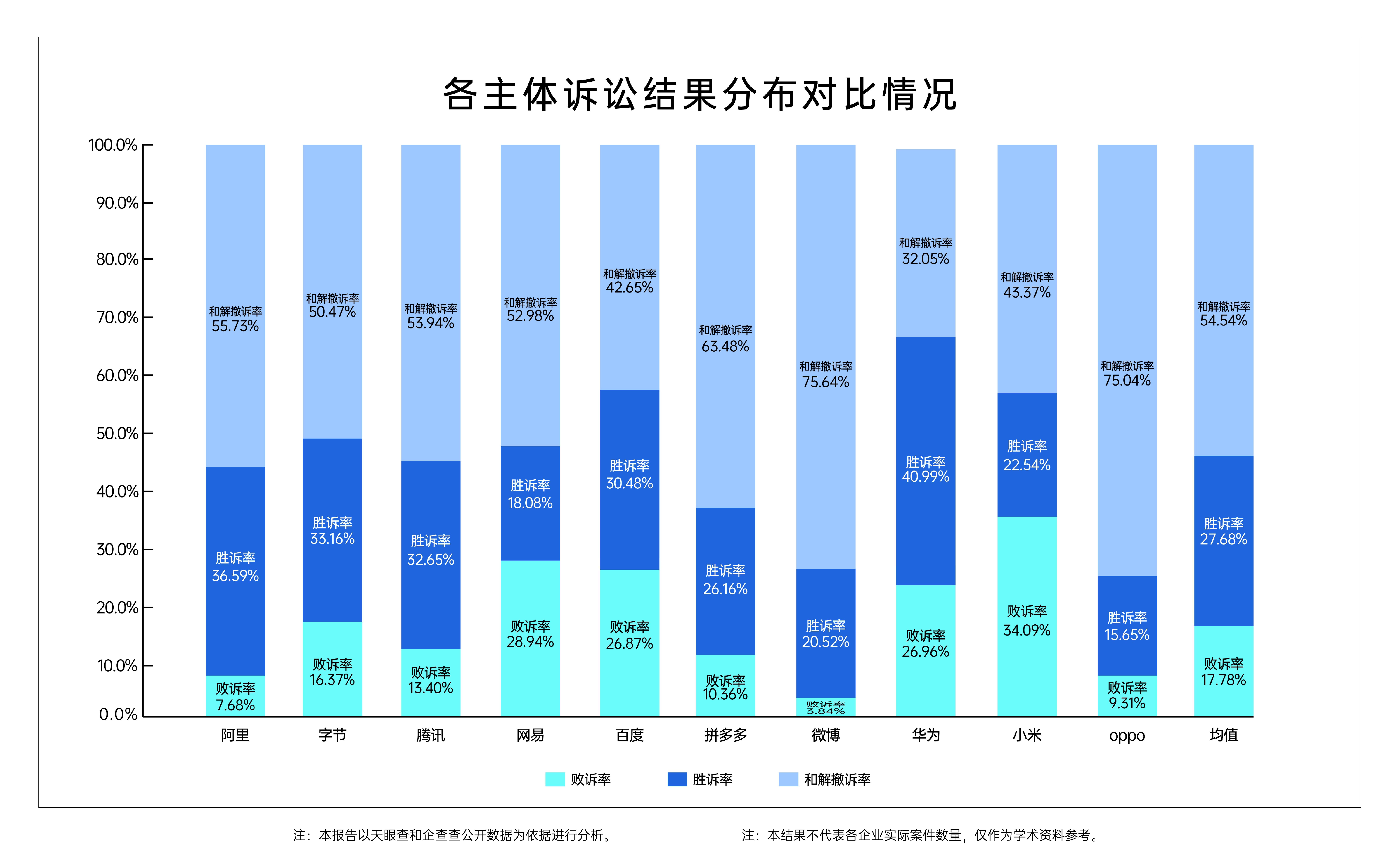 (根據(jù)企查查專業(yè)版數(shù)據(jù)統(tǒng)計(jì),各主體訴訟結(jié)果分布對(duì)比情況)