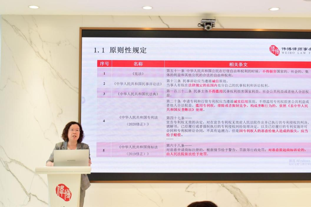 2025年9月5日,由北京市偉博律師事務(wù)所(以下簡稱“偉博律所”)主辦的“知識產(chǎn)權(quán)惡意訴訟疑難問題與實(shí)務(wù)研究”講座在北京CBD陽光金融中心偉博律所北京總部舉辦。偉博律所高級合伙人范秀霞律師擔(dān)任主講人,從法律規(guī)定、認(rèn)定標(biāo)準(zhǔn)、司法實(shí)踐、國際比較及實(shí)務(wù)建議五個(gè)方面系統(tǒng)梳理了惡意訴訟的現(xiàn)狀與挑戰(zhàn)。
