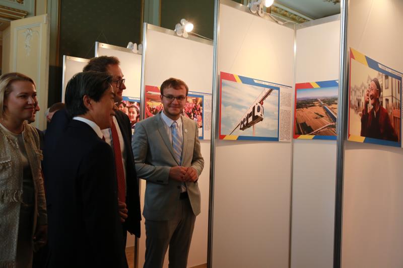 法制網(wǎng)烏克蘭利沃夫9月16日電 記者楊軍 中國駐烏克蘭大使館9日與烏克蘭利沃夫州共同舉辦中華人民共和國成立70周年成就圖片展。整個(gè)圖片展分為“歷史軌跡,發(fā)展成就,合作共贏”三個(gè)部分,共展出130張圖片,集中展示了新中國成立以來取得的偉大成就。同時(shí),應(yīng)利沃夫州州長馬爾斯基邀請,中國駐烏克蘭大使杜偉訪問利沃夫州,會見了州長馬爾斯基先生,就中國與利州合作事宜進(jìn)行交流。