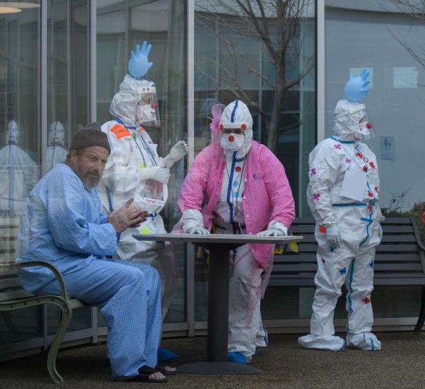 2月4日,“醫(yī)療小丑”在以色列北部城市采法特的齊夫醫(yī)學(xué)中心工作。新華社/基尼圖片社