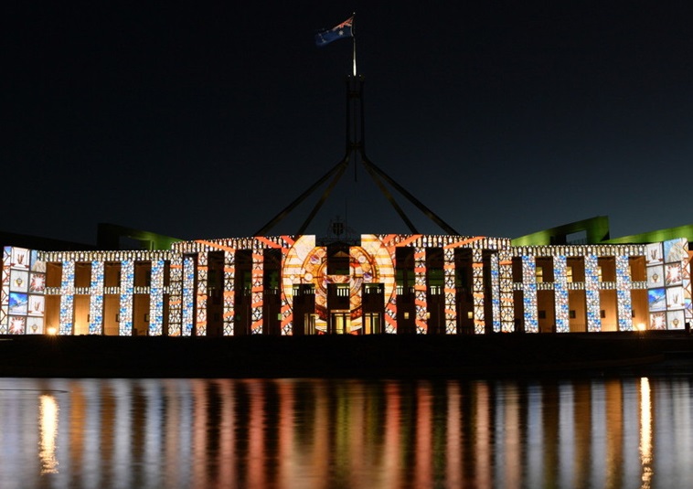 人民網(wǎng)訊 當(dāng)?shù)貢r(shí)間2021年2月28日,澳大利亞堪培拉,澳大利亞堪培拉燈光節(jié)首日,精彩燈光秀投射到建筑上美輪美奐。