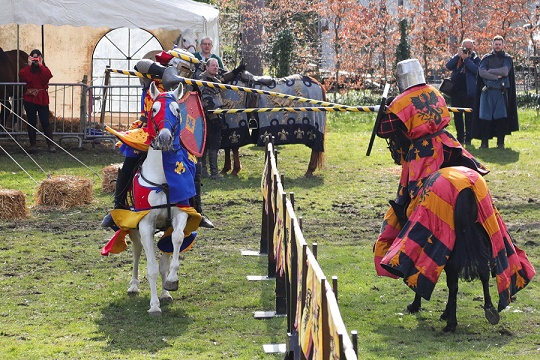 4月10日,身著古裝的騎手在比利時小城烏費(fèi)的中世紀(jì)風(fēng)情節(jié)上為觀眾表演。