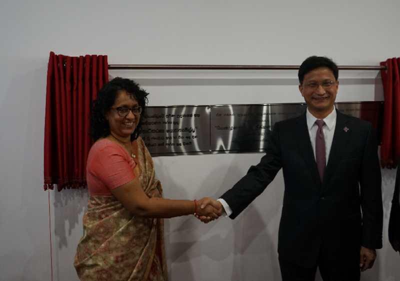 圖為斯總理阿馬拉蘇里亞與戚振宏大使共同揭牌。
