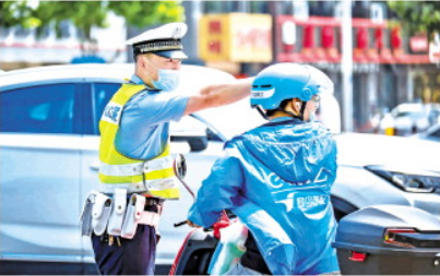 連日來,江蘇多地持續(xù)發(fā)布高溫紅色預警,最高氣溫升至40攝氏度,實際體感溫度更高。江蘇省興化市交警不懼高溫“烤”驗,全身心堅守崗位,用汗水維護道路安全暢通。圖為7月13日,交警在路面維持秩序。