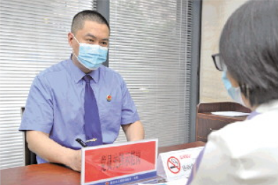 圖為周覬聽(tīng)取申訴人意見(jiàn)及訴求。