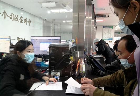 圖為1月28日,江蘇省南通經(jīng)濟(jì)技術(shù)開發(fā)區(qū)人民法院干警以“滿格電”的狀態(tài)投入到緊張繁忙的工作之中。圖為工作人員在訴訟服務(wù)中心為當(dāng)事人辦理立案手續(xù)。