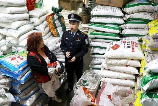 圖為春耕春播時(shí)節(jié),貴州省赤水市公安局組織民警開展“綠劍護(hù)農(nóng)”行動(dòng),對(duì)市場(chǎng)銷售的種子、化肥、農(nóng)藥等農(nóng)資產(chǎn)品進(jìn)行拉網(wǎng)式檢查,打擊坑農(nóng)害農(nóng)違法行為,為春耕生產(chǎn)保駕護(hù)航。法治日?qǐng)?bào)全媒體通訊員 王長育 攝