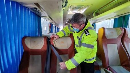 3月10日,天津市公安交通管理局和平支隊(duì)民警深入轄區(qū)企業(yè),對(duì)客運(yùn)車輛安全帶設(shè)施進(jìn)行檢查。 焦軒 攝