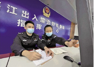 圖為安靜(右)與同事開展數(shù)據(jù)排查工作。湛江出入境邊防檢查站供圖