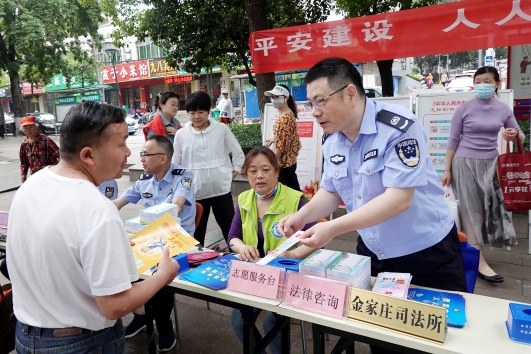 5月30日,安徽省馬鞍山市花山區(qū)金家莊街道組織開展以“平安建設 人人參與”為主題的廣場宣傳活動。圖為金家莊司法所工作人員正在接受群眾咨詢。法治日報全媒體通訊員 胡智慧 汪華 攝