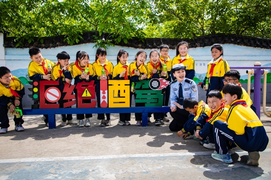 4月17日,山東省滕州市公安局交警大隊(duì)組織學(xué)生在卓莊村交通安全主題公園開(kāi)展“拒絕酒駕”交通安全宣傳活動(dòng),民警用通俗易懂的語(yǔ)言講解酒駕的危害性。法治日?qǐng)?bào)全媒體通訊員 鐘家增 攝