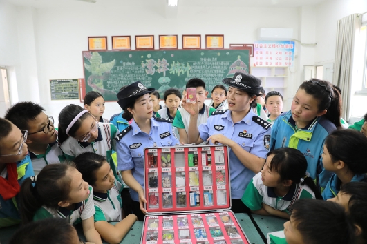 6月4日,貴州省赤水市公安局組織民警走進(jìn)轄區(qū)學(xué)校,通過(guò)講解禁毒知識(shí)等,引導(dǎo)學(xué)生珍愛生命、遠(yuǎn)離毒品。法治日?qǐng)?bào)全媒體通訊員 王長(zhǎng)育 攝