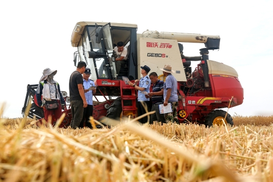 麥收時節(jié),山東省臨沂市郯城縣公安局泉源派出所民輔警走進田間地頭,向群眾宣講安全生產(chǎn)常識。 法治日報全媒體通訊員 李結(jié)義 曹坤 攝