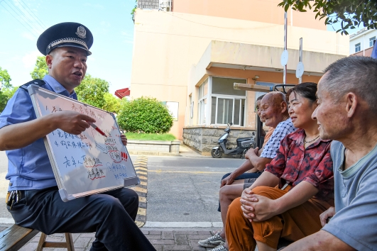 近日,安徽省含山縣公安局花山派出所組織民警進(jìn)社區(qū),為老年人普及防范電信網(wǎng)絡(luò)詐騙知識(shí)。法治日?qǐng)?bào)全媒體通訊員 馮善軍 攝