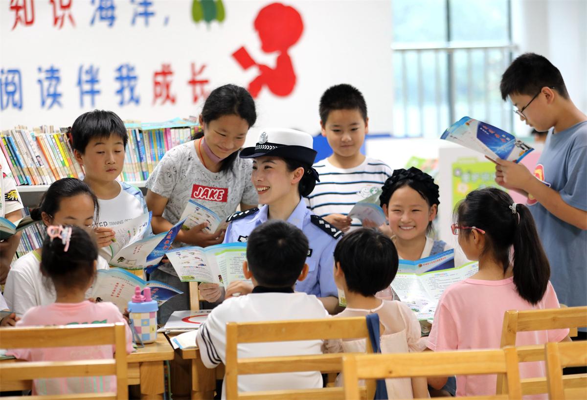 7月13日,安徽省舒城縣公安局交管大隊(duì)聯(lián)合城中派出所民警走進(jìn)縣圖書館,向在此閱讀、休閑的市民宣傳交通安全知識(shí),讓安全出行知識(shí)走近市民、貼近生活。