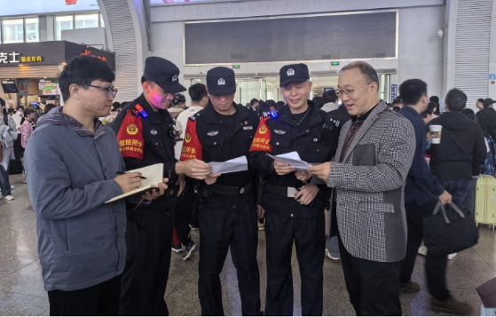 “春運(yùn)期間,我們專門組建了由5名民警、6名輔警組成的‘鐵鷹’小分隊(duì),緊盯霸座、猥褻、抽煙等影響旅客出行安全的突出治安問題,嚴(yán)打電信網(wǎng)絡(luò)詐騙等違法犯罪,全力壓發(fā)案、打現(xiàn)行、保民安。”??跂|站派出所教導(dǎo)員呂海瑞告訴記者。