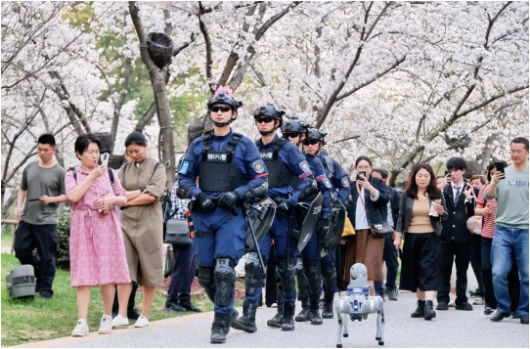 3月22日,江蘇省無錫市黿頭渚景區(qū)內(nèi),櫻花競相綻放。櫻花樹下,游人如織,歡聲笑語不斷。長春橋邊、櫻花谷入口、賞櫻閣下……執(zhí)勤警力在默默守護。每年春天,八方游客來錫,共赴櫻花之約。平均每日數(shù)萬名游客涌入5.39平方公里的景區(qū),如何守護景區(qū)和游客的安全,守住游客對無錫的美好印象,成為無錫警方的“必答題”。